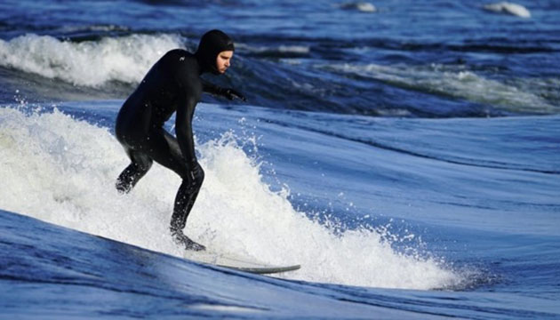 A Montreal surfer rides a wave on the St. Lawrence River on Jan. 18. Experts say despite a decline in COVID-19 cases nationally, variants threaten to spark a third wave of the pandemic that might be more devastating and harder to control. (Credit: CBC/Radio-Canada; Adam Miller: CBC News, Feb 24, 2021)